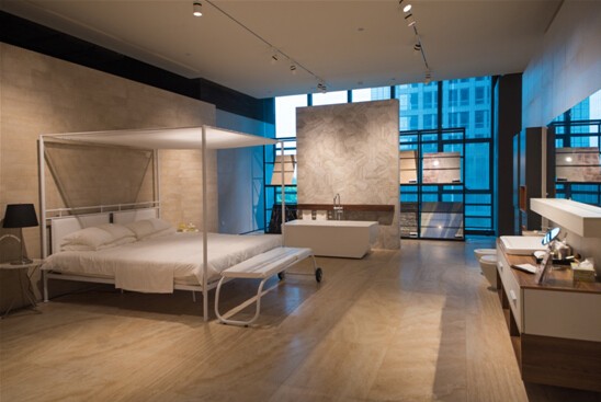 手握精品,何乾又在經(jīng)營模式上實現(xiàn)了一次領先全業(yè)的變革。他抓住消費者開始講求瓷磚風格、整體家居環(huán)境配套這一市場痛點,主導金意陶“賭”了一把:拿出前一年所有利潤,投建了國內(nèi)第一座景觀式展廳——金意陶“思想館”。