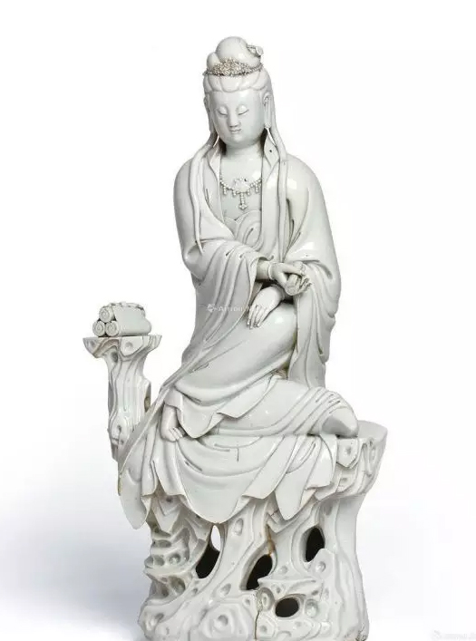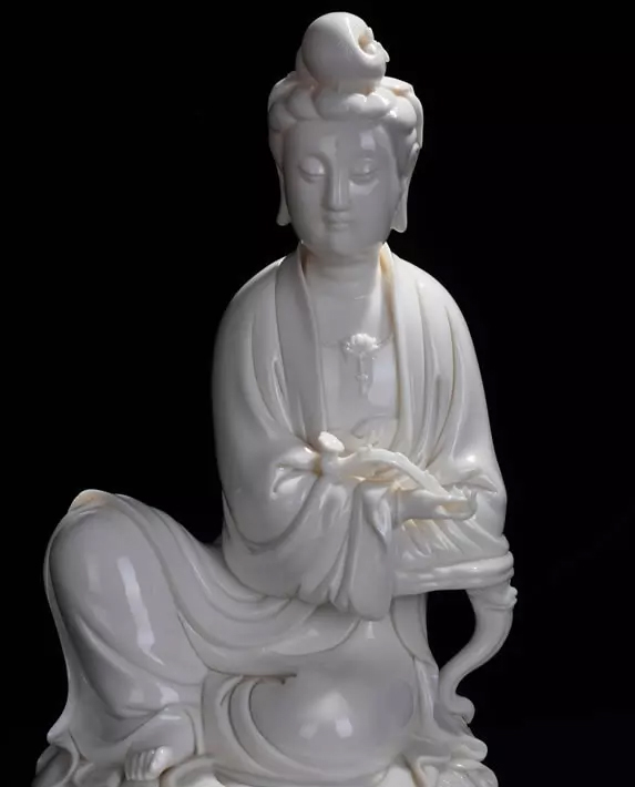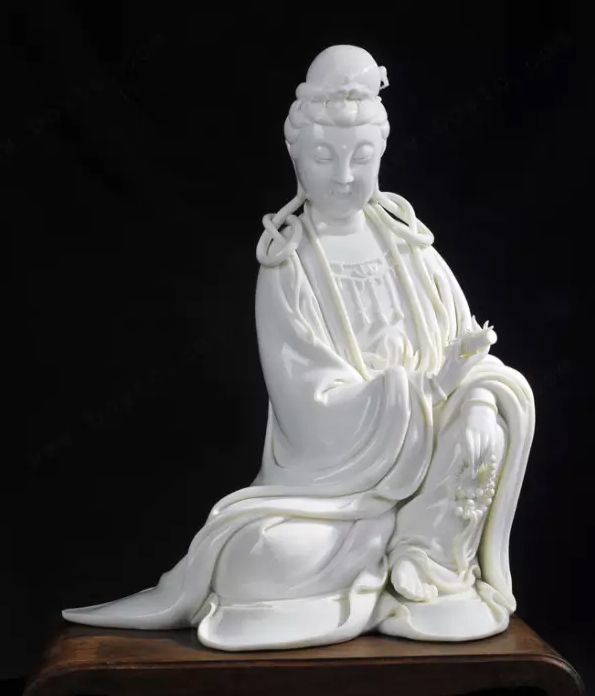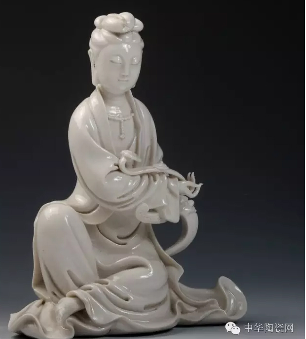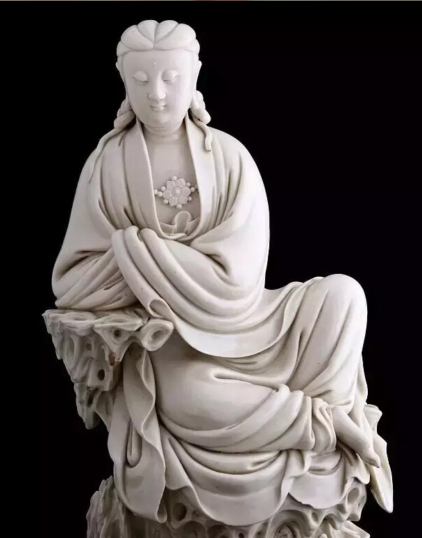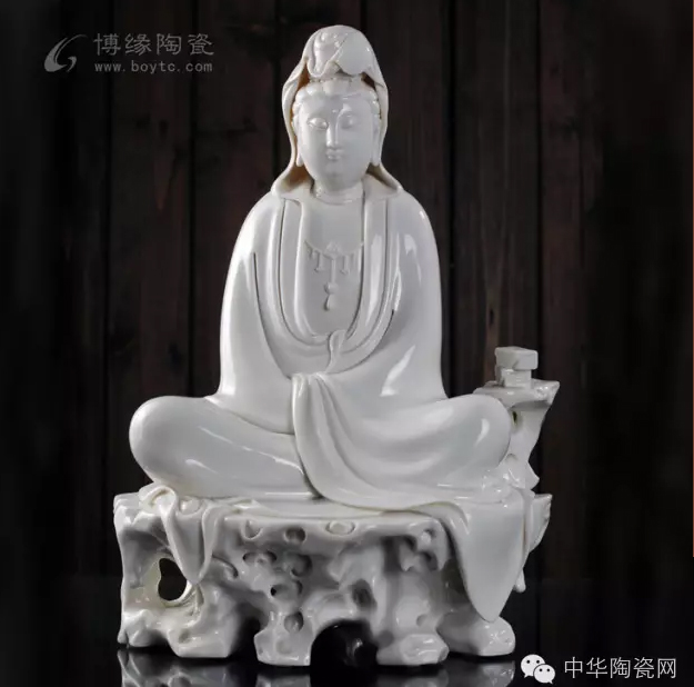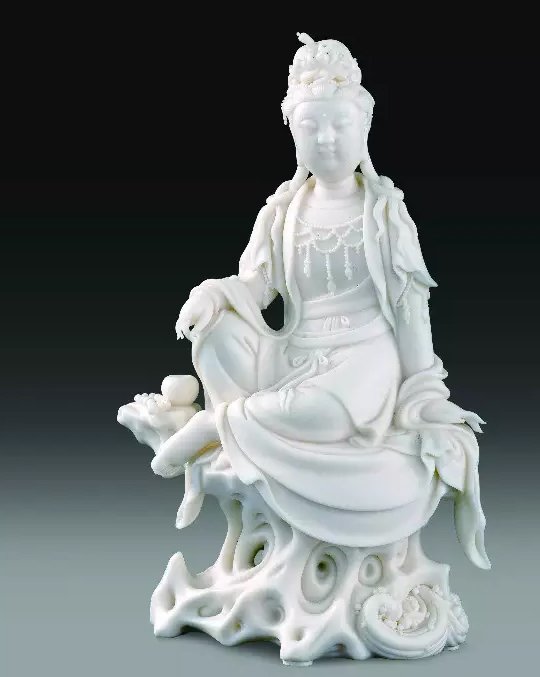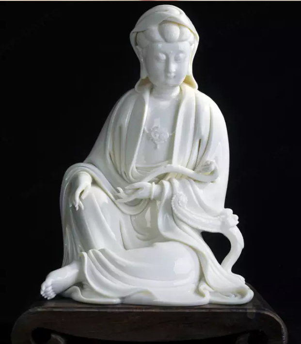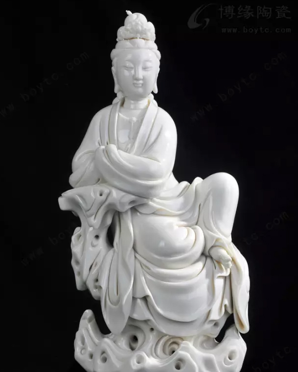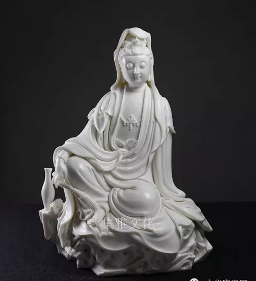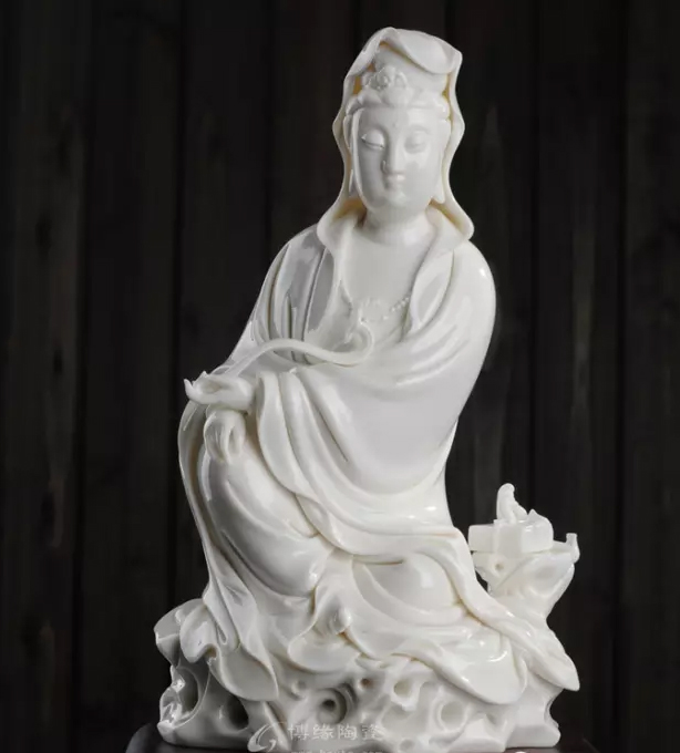 觀音是德化窯瓷塑中數(shù)量最多、最有代表性的作品。明代,瓷塑作品有渡海觀音、送子觀音、童子觀音、坐蓮觀音、坐巖觀音等。