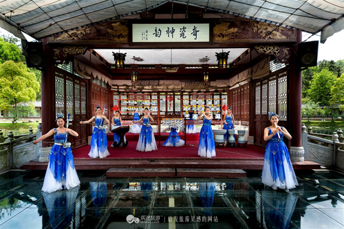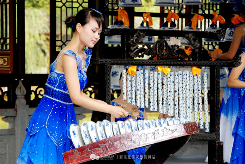 差不多算好時(shí)間,就可以去到瓷音水榭觀賞絕妙的瓷樂(lè)表演啦。瓷二胡的婉轉(zhuǎn)悠揚(yáng)、瓷笛的清脆高亢、瓷簫的圓潤(rùn)輕柔、瓷編鐘的清新脫俗、瓷甌的音色明亮、瓷編磬的回音繞梁······一群身著青花瓷服飾的美麗姑娘,用瓷制成的樂(lè)器,奏出了曼妙動(dòng)聽的旋律,更給神奇的古窯增添了一份浪漫氣息。