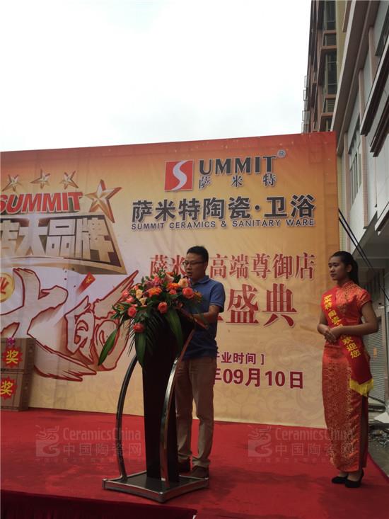 陽(yáng)春薩米特陶瓷旗艦店總經(jīng)理何總的致辭中說(shuō)道,今天榮耀開業(yè),離不開企業(yè)和品牌的支持和引導(dǎo),離不開眾多領(lǐng)導(dǎo)和各屆朋友的關(guān)懷和幫助,離不開廣大消費(fèi)者的認(rèn)同和信賴。今后,我將專注于薩米特,把團(tuán)隊(duì)的精力都投入到品牌經(jīng)營(yíng)建設(shè)上,盡全力伴隨薩米特品牌發(fā)展的步伐,再攀新的高峰,為建設(shè)美麗的陽(yáng)春作出一份力。