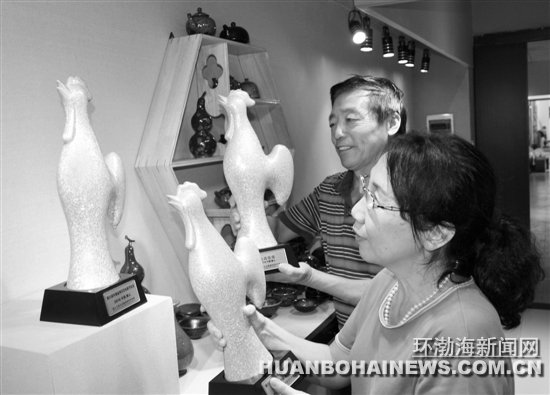 第25屆中國(guó)金雞百花電影節(jié)在唐山舉辦之際,唐山玉春天目陶瓷研究所的張惠峰、史艷華經(jīng)過幾個(gè)月的努力,完成了窯變金絲釉“金雞報(bào)曉”瓷品的高溫一次燒成。“金雞報(bào)曉”雄雞造型釉色金碧輝煌、雍容華貴,被電影節(jié)組委會(huì)確定為紀(jì)念品,向世人展示唐山陶瓷藝術(shù)的魅力。