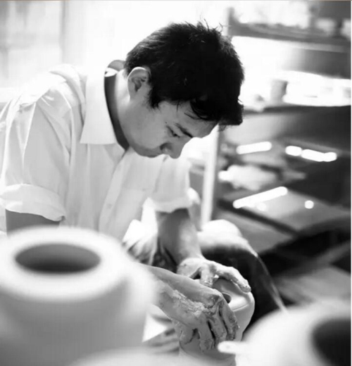 師傅正在專心致志拉坯