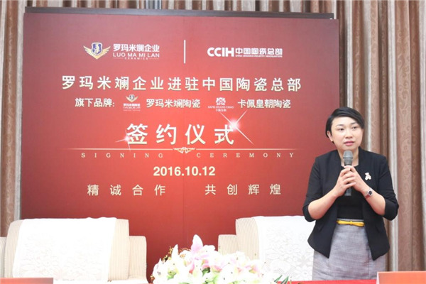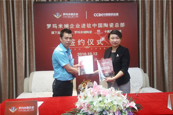 2016年10月12日上午11:08,羅瑪米斕企業(yè)進駐中國陶瓷總部簽約儀式在中國陶瓷劇場3樓貴賓室隆重舉行。羅瑪米斕企業(yè)是中盛陶瓷旗下的主力轉(zhuǎn)型品牌,其中包含了羅瑪米斕陶瓷和卡佩皇朝陶瓷兩個子品牌,企業(yè)一直秉承“創(chuàng)一流品質(zhì)、創(chuàng)一流服務、創(chuàng)一流品牌”的宗旨,并以“創(chuàng)新、品質(zhì)、服務”為企業(yè)發(fā)展導向,致力提升產(chǎn)品附加值和品牌影響力。