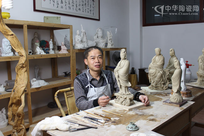 蘇杜村即是堅守傳統(tǒng)瓷塑的信奉者之一。自少年從伯父、中國工藝美術(shù)大師蘇清河學(xué)藝,迄今已逾廿年。雖無有大成,但于德化傳統(tǒng)瓷塑技藝已得伯父真?zhèn),已有小成。自?chuàng)誠毅研究所以來,持邊研究、邊生產(chǎn)、過授徒的模式,努力探索德化傳統(tǒng)瓷塑在當(dāng)今世界的存續(xù)與發(fā)展之路,力爭在德化傳統(tǒng)瓷塑尋得一己之錐地,努力秉承先輩余輝并光大之。