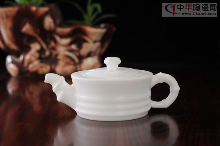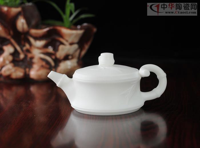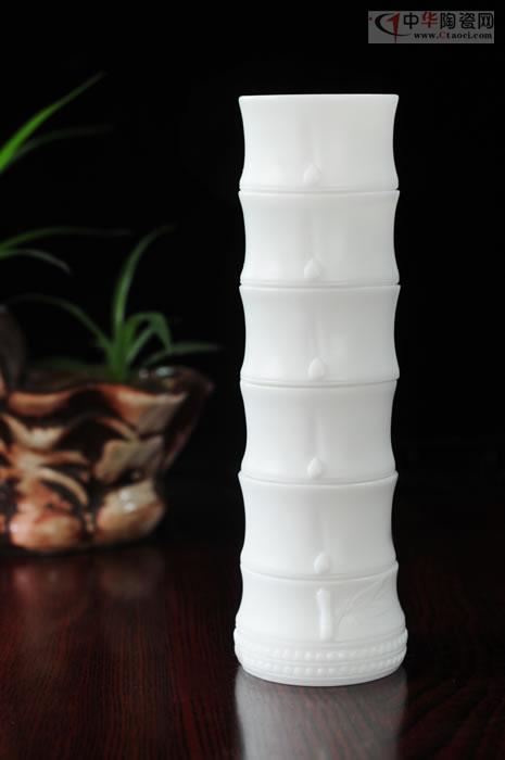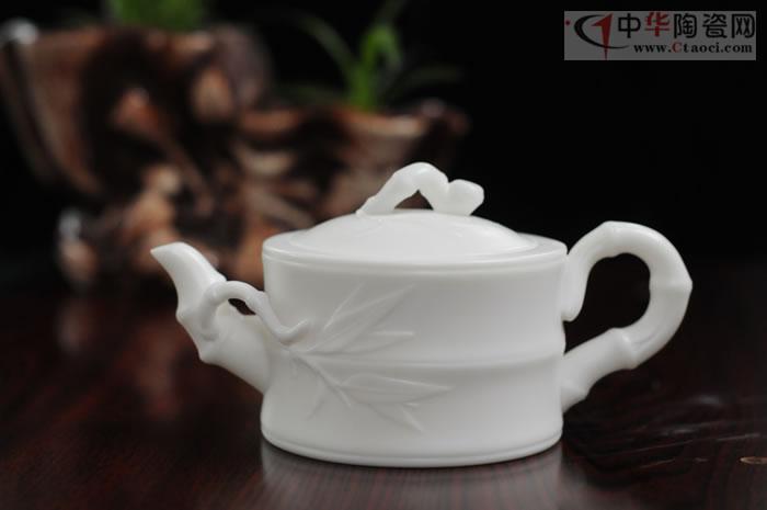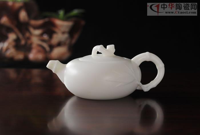 作品采用特級德化白瓷高嶺土,每噸數(shù)萬元。壺身、壺柄宛如竹節(jié),節(jié)節(jié)高升,執(zhí)壺在手,光潤潔白,如脂似玉,作品胎骨潔白,堅實致密,有凝脂似玉之感,迎光透視,色澤光潤明亮,晶瑩剔透,集實用性、觀賞性、收藏性于一體。作品手刻簽名。