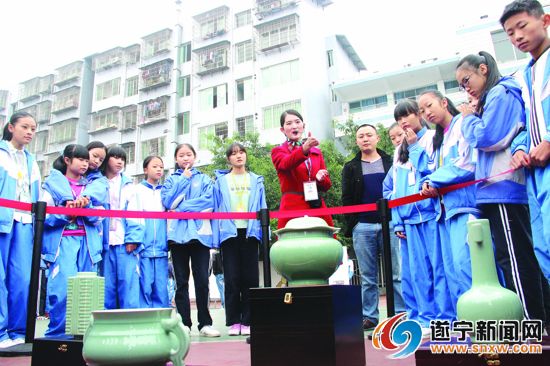 巡看國寶宋瓷 ——遂寧流動博物館走進(jìn)校園 昨(2)日,“巡看遂寧國寶——遂寧流動博物館”巡展活動正式啟動。首場巡展走進(jìn)大英實驗學(xué)校,全校師生在校園里就感受到了遂寧國寶的魅力。 流動博物館活動由市教育局、市文廣新局組織,由四川宋瓷博物館送達(dá)全市各中小學(xué)校展覽;顒訉㈤L期開展,每周將走進(jìn)3所遂寧的中小學(xué)校展覽,四川宋瓷博物館還將不斷更新展覽的主題,讓全市的中小學(xué)生更直觀、更系統(tǒng)地了解遂寧歷史,弘揚(yáng)傳統(tǒng)文化。