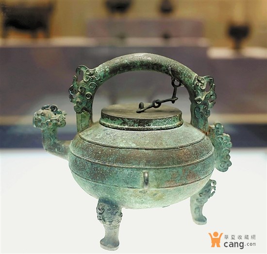 此外,匜的獸形流和獸形鋬耳,以及全身刻劃的復雜紋飾具有楚國青銅器的風格。下部的圓盤兩側帶環(huán)耳,可供提舉,全身也刻劃幾何紋飾,制作工藝較為復雜,紋飾精美。