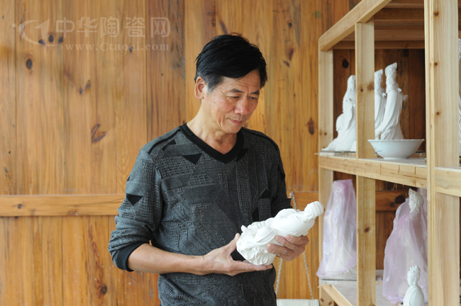 實(shí)心堆塑的創(chuàng)造需要耐性,要先取一塊備用煉制的坯泥揉捏出創(chuàng)作題材的軀干結(jié)構(gòu),然后用竹制雕刀、鐵制雕具等雕塑工具進(jìn)行各部位造型雕刻成型,雕好坯體后,還需等它自然涼干,而這一過(guò)程就需三四個(gè)月,爾后還需重復(fù)燒制十多次,這種制作方法是少數(shù)幾個(gè)德化老藝人的絕活。