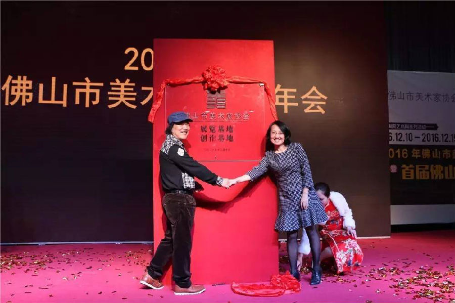 佛山市美術(shù)家協(xié)會展覽基地、創(chuàng)作基地揭牌儀式嘉賓:佛山美協(xié)主席鐘汝榮、南風古灶總經(jīng)理張瀅女士