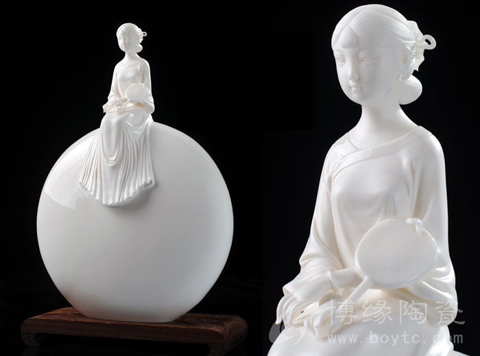 簡介:江南風(fēng)光旖旎,女子溫婉賢淑,作品刻畫細(xì)致,女子五官精致,神采婀娜,衣物線條流暢自然。作者師承當(dāng)代著名雕塑家王則堅(jiān)、中國工藝美術(shù)大師盧思立等名家,2015榮獲首屆陶瓷成型職業(yè)技能全國總決賽雕塑競賽第一名。