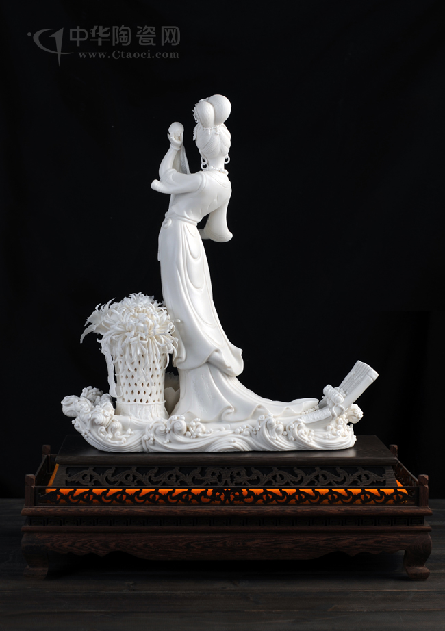 其作件件精美,靈活的雙眼、纖細(xì)的雙手、精致的菊花、牡丹等,不禁令人感嘆這精湛的工藝,鬼斧神工、妙趣橫生!風(fēng)華正茂的少女,在蘇志強(qiáng)的瓷刀下更是惟妙惟肖,或利用舞蹈展現(xiàn)女性的靈性;或透過勞動體現(xiàn)女性的賢德淑良;或通過吹拉彈唱來演繹女性的空靈……