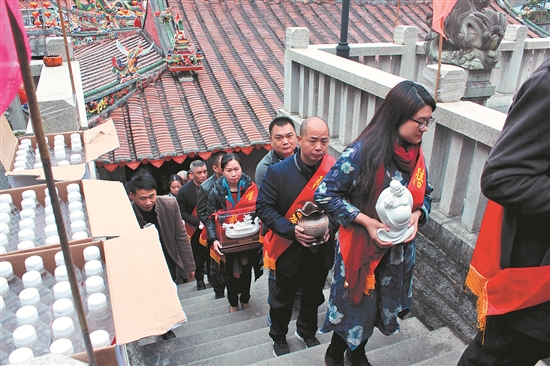 春節(jié)期間,一年一度的“祭窯坊公林炳”的活動(dòng),在德化縣龍潯鎮(zhèn)寶美村舉行。祭祀的供品很特別,敬獻(xiàn)的不是豬、牛、羊“三牲”祭禮,而是德化陶瓷行業(yè)的陶藝家和企業(yè)家新開發(fā)并獲得訂單的產(chǎn)品,以及陶瓷藝人新創(chuàng)作并獲獎(jiǎng)的藝術(shù)品。 據(jù)了解,農(nóng)歷正月初六是窯坊公林炳誕辰日,每年這一天在祖龍宮進(jìn)行的奉祀,成為德化陶瓷文化的重要活動(dòng)之一。