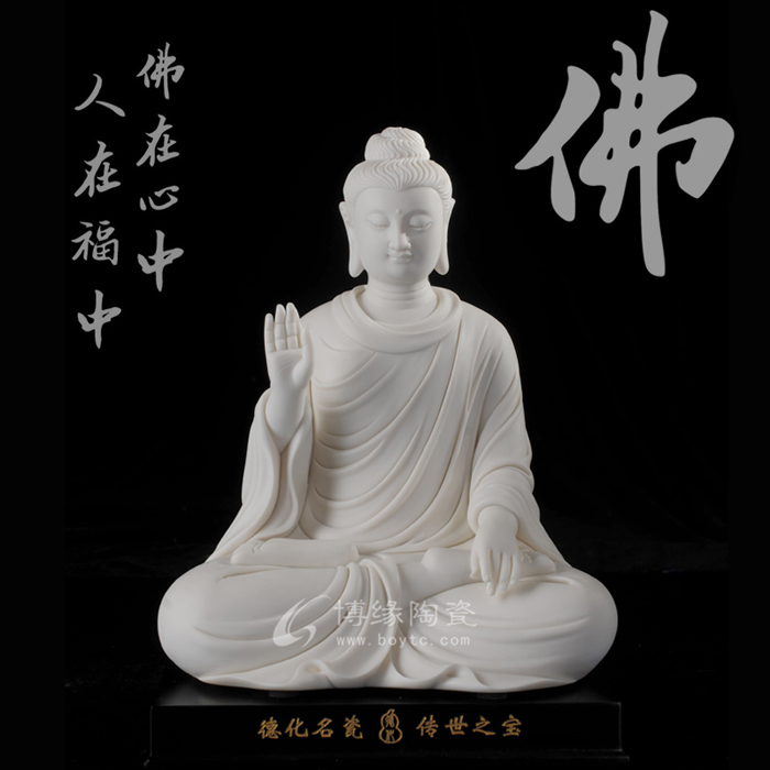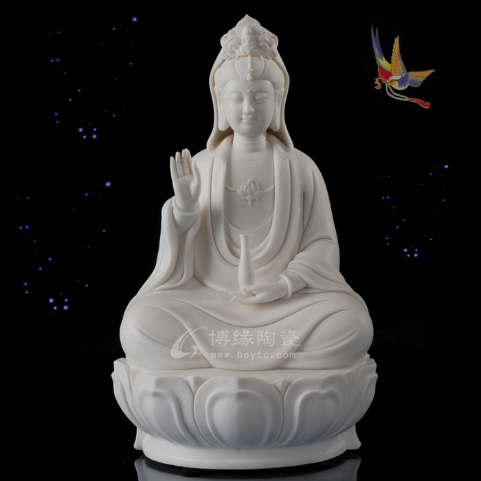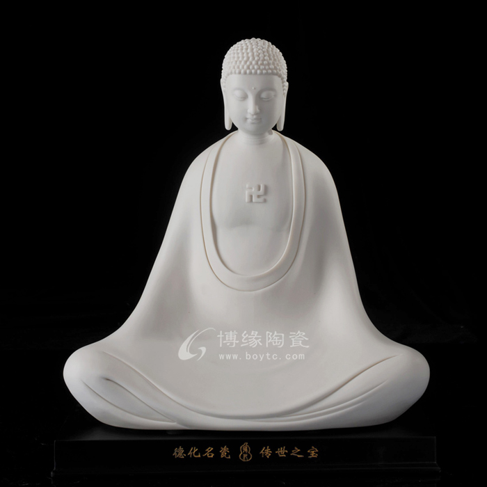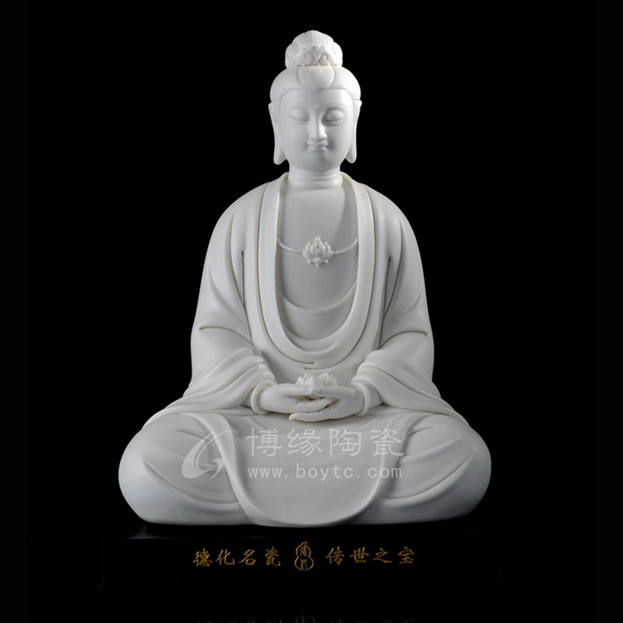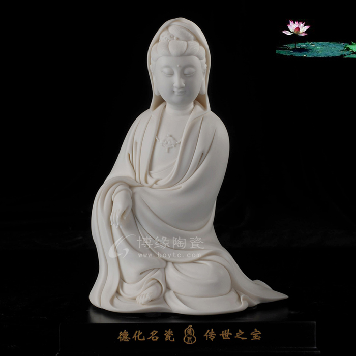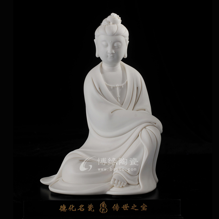 在追隨何朝宗藝術(shù)腳步的同時(shí),林建平也一直在尋找著突破。他努力把德化古代的制瓷工藝與自我凈心感悟的思想有機(jī)結(jié)合,展現(xiàn)當(dāng)前審美的簡(jiǎn)約風(fēng)格。廣受歡迎的《瓷韻觀音》和《持蓮觀音》便是這種創(chuàng)新的代表作,從傳統(tǒng)工藝中走出的新的審美理想,照樣創(chuàng)造出佛像的莊嚴(yán)、肅穆、慈悲、大愛。