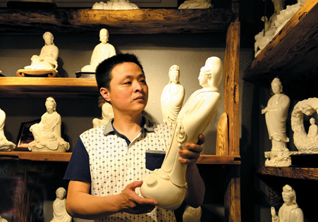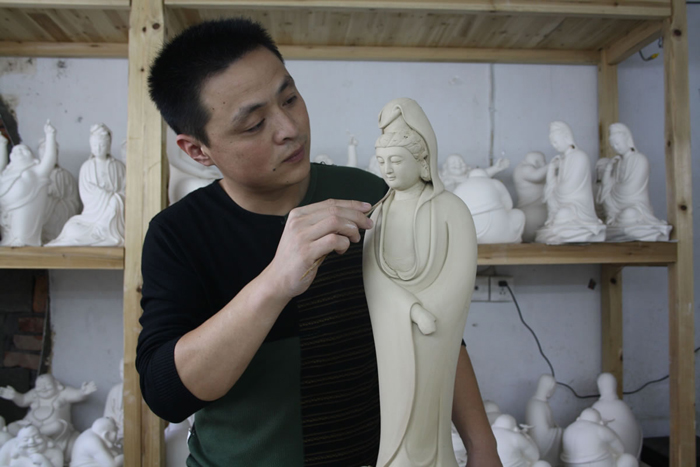 宗教雕塑第一人、明代陶塑家何朝宗是德化窯的代表性人物,是德化陶瓷人心中的祖師爺,其高超的陶瓷工藝仍流傳于世。現(xiàn)今,延續(xù)何派風(fēng)格的工藝藝人仍數(shù)不勝數(shù),林建平就是其中一位。
