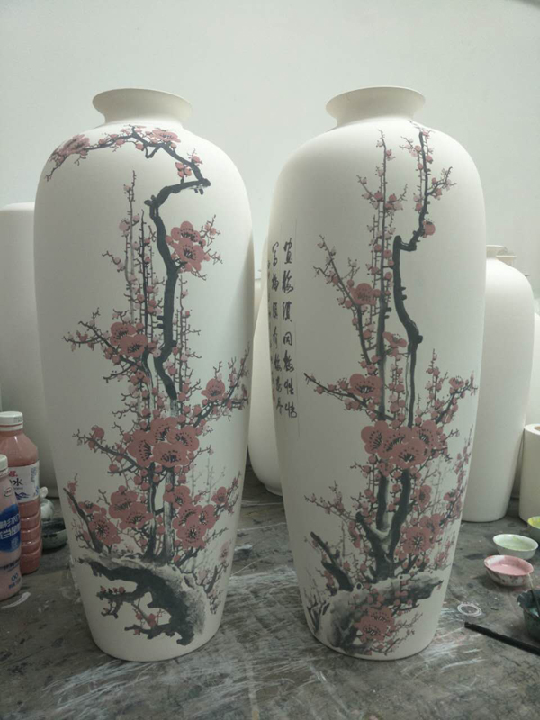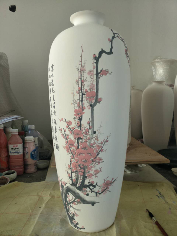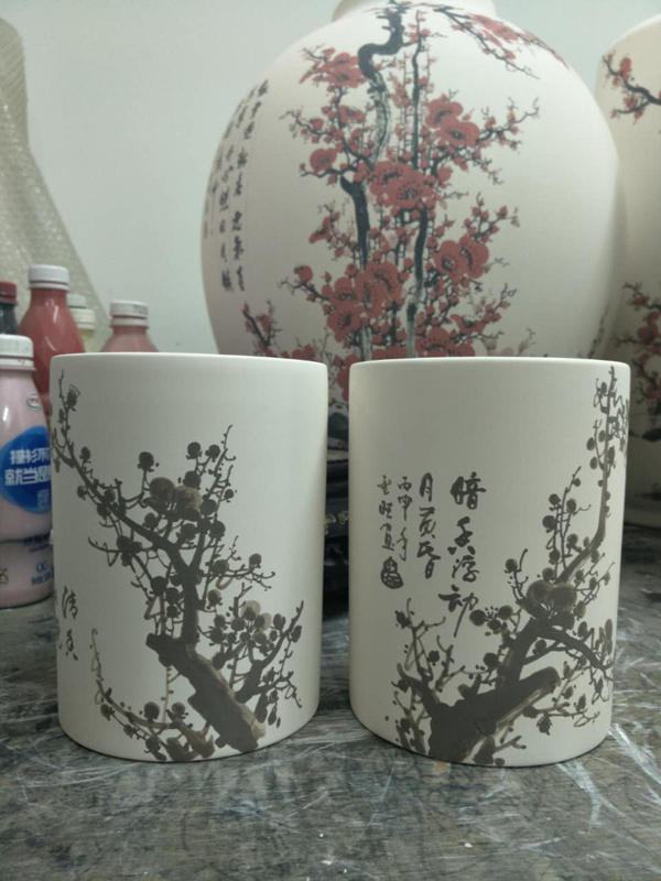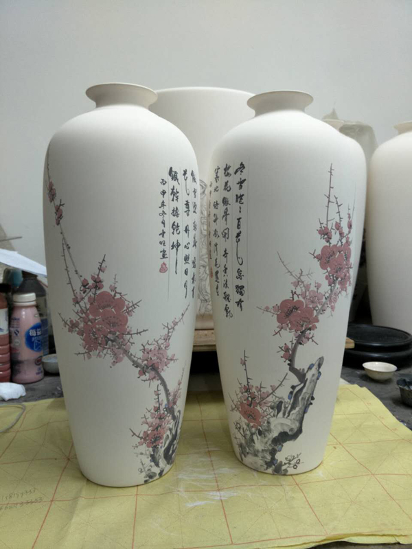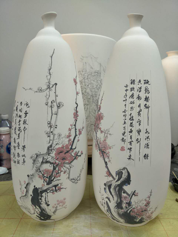 從大學(xué)畢業(yè)至今,醉心于具有不屈不撓、傲雪欺霜性格的國畫梅花。傾心研究出釉下彩“凹凸”畫法,經(jīng)過上百次試驗,克服了胎體色料、釉水不相容,色料易起泡,脫落的種種的困難,終于研究出晶瑩剔透,光亮照人的釉下“凹凸”梅花,使釉下彩梅花產(chǎn)生極具凸出感(凸出厚度達(dá)到一毫米)。打破釉下彩“寧平不凸,寧薄不厚”的傳統(tǒng)畫法,填補了釉下彩的技法的空白。