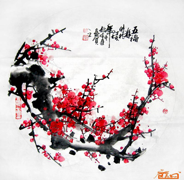 梅以它的高潔、堅強、謙虛的品格,給人以立志奮發(fā)的激勵。在嚴(yán)寒中,梅開百花之先,獨天下而春,因此梅又常被民間作為傳春報喜的吉祥象征。