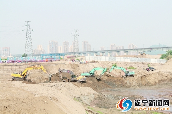 記者來到現(xiàn)場(chǎng)時(shí),項(xiàng)目建設(shè)方負(fù)責(zé)人——中國(guó)建筑第八工程局有限公司項(xiàng)目執(zhí)行經(jīng)理李新平正在和設(shè)計(jì)方開“碰頭會(huì)”,為保質(zhì)保量完成任務(wù),現(xiàn)場(chǎng)辦公、現(xiàn)場(chǎng)分析、現(xiàn)場(chǎng)提出解決方案,已成工作常態(tài)。“為確保工程在規(guī)定時(shí)間內(nèi)保質(zhì)保量完成,我們把具體工作量化到了每個(gè)小時(shí),每天有日?qǐng)?bào),每周有周報(bào),每月有月報(bào),施工方、設(shè)計(jì)方以及業(yè)主每天早晚都要開碰頭會(huì)。”李新平說,項(xiàng)目地點(diǎn)本身就是魚塘,距涪江又僅有100米左右的距離,滲透量特別大,光是抽水就抽了30萬(wàn)方,20臺(tái)柴油泵連續(xù)工作了近10天。“目前,工人正在陸續(xù)進(jìn)場(chǎng),7、8月會(huì)達(dá)到高峰期,預(yù)計(jì)會(huì)突破1000人。”