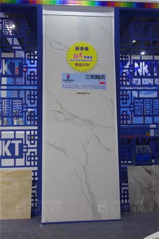 新景泰以“引領陶瓷施釉技術的工業(yè)4.0”為志業(yè),力推超寬噴墨機,最大打印寬度達1.8米、單件打印長度達5米,打印通道多達10個,F(xiàn)場展出其打印的1200×3600mm噴墨產品,令人駐足。
