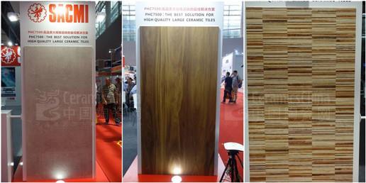 除了接續(xù)新近兩年技術裝備的日益系統(tǒng)化,本次展會現(xiàn)場因應了瓷磚大規(guī)格、大板的強風吹拂,匹配現(xiàn)代仿古磚的市場需求,包裹墨水、數(shù)碼噴釉的等量可觀,則從顏值上為產品的淬煉增分不少。