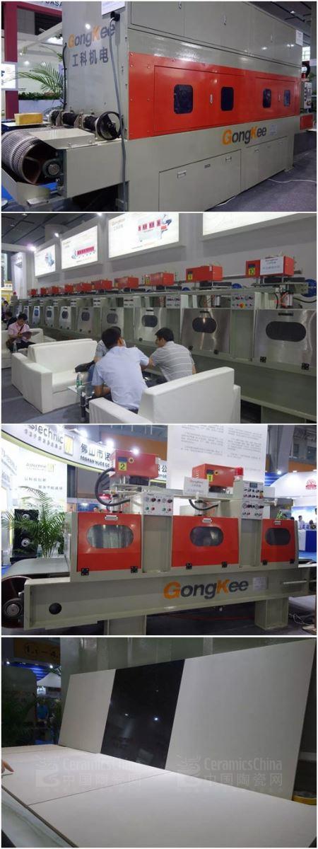 與此同時,工科作為諾貝爾等眾多知名品牌的裝備供應商,現(xiàn)場更是展出最小600 ×1200 mm,最大1600× 3200 mm的瓷磚產品。相關負責人表示,石材整線拋光將是企業(yè)未來傾注的重點。
