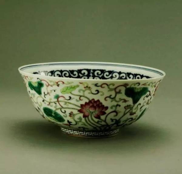 東莞市博物館 清 光緒款內(nèi)青花外粉彩蓮花紋碗
