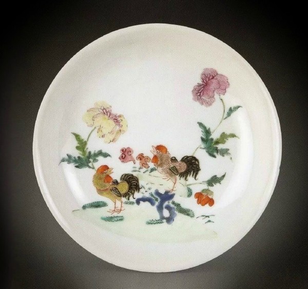粉彩雄雞花卉紋盤