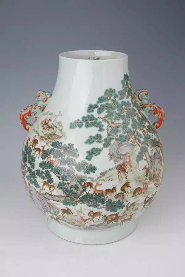 清道光粉彩鳳耳百鹿尊