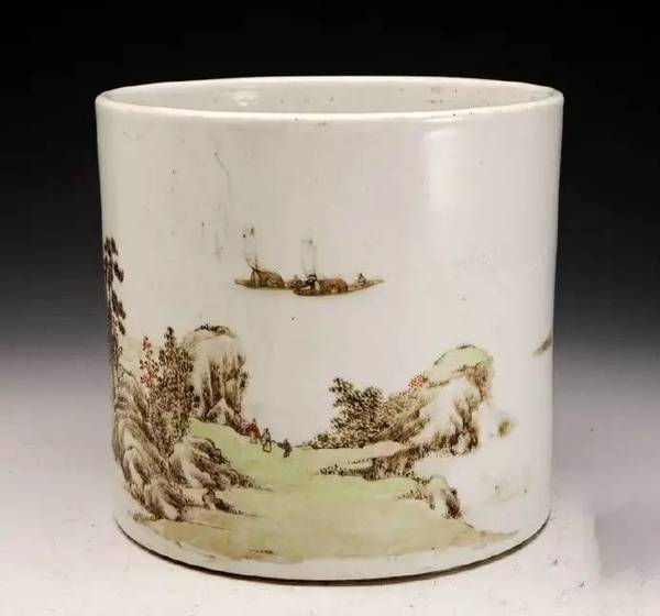 清雍正款粉彩山水人物圖筆筒