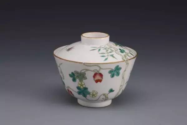 清光緒 粉彩過枝瓜瓞紋蓋碗