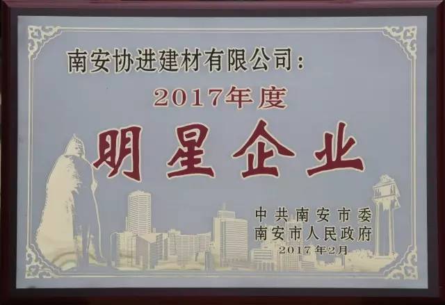 2017年度,南安協(xié)進(jìn)建材有限公司,再次被中共南安市委,南安市人民政府評(píng)為明星企業(yè)。