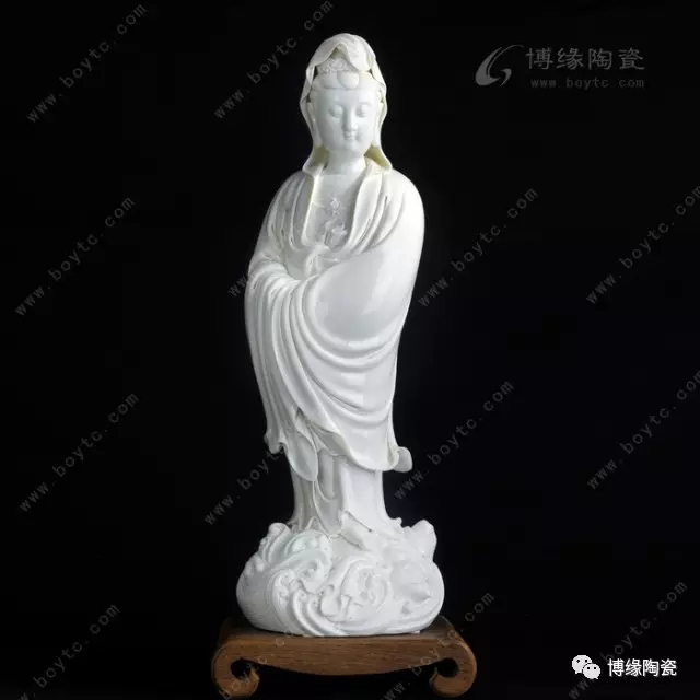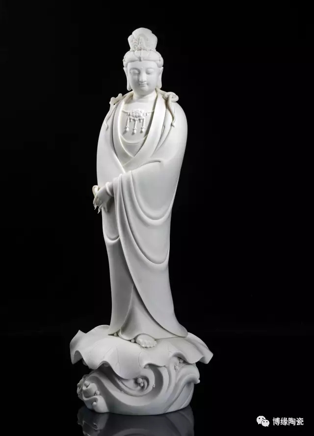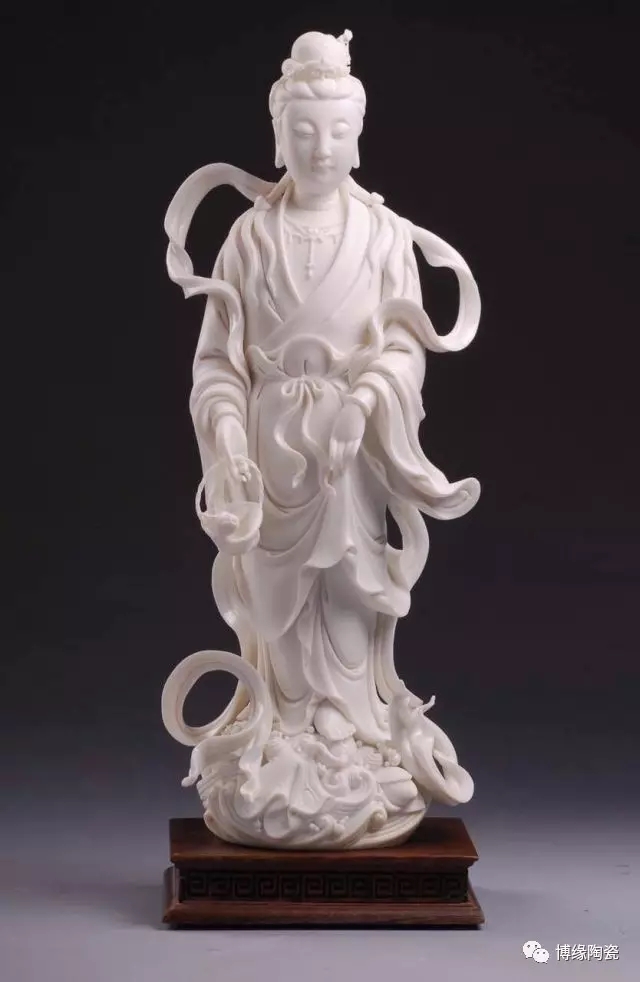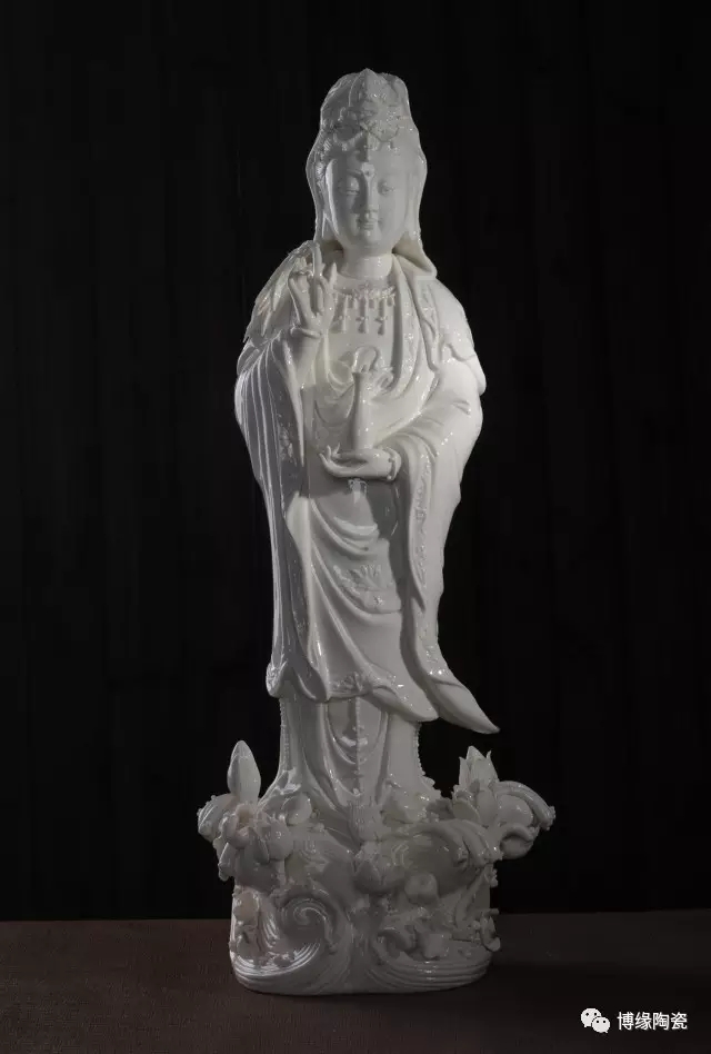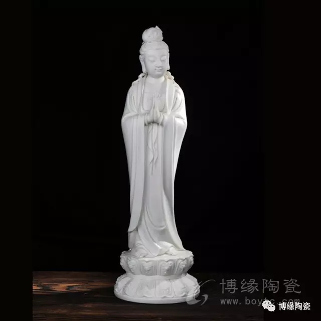 德化瓷器,以白瓷為最;白瓷之中,又以佛像為最。德化白瓷所塑佛像有性格鮮明、造型優(yōu)美、神態(tài)逼真、風(fēng)格洗練的特點。有一種單純的雕塑美和原材料的質(zhì)地美,最能體現(xiàn)佛教樸素、平和的思想。早在明代德化白瓷佛像就名聲在外,一代“瓷圣”何朝宗佛像名作流傳后世,成為世界各大博物館收藏的珍品,更對佛像雕塑史上產(chǎn)生深遠(yuǎn)的影響,形成“何派”雕塑,其開創(chuàng)的捏、塑、雕、刻、刮、削、接、貼八字技法延用至今。何派觀音雕塑注重于細(xì)節(jié)之美,精益求精,故而十分著意衣紋的刻畫,使線條流暢,翻轉(zhuǎn)自然。觀其佛像,仿佛有春風(fēng)拂面,衣袂飄揚的出塵之感。