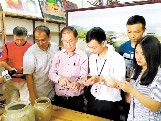 專家在新會博物館鑒賞官沖窯出土文物。