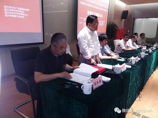 中國傳統(tǒng)文化和傳統(tǒng)工藝發(fā)展工程陶瓷專中國科學(xué)院國際學(xué)術(shù)交流中心副主任、中國傳統(tǒng)文化和傳統(tǒng)工藝發(fā)展工程工委副主任兼秘書長 楊新(右一)宣讀文件 。