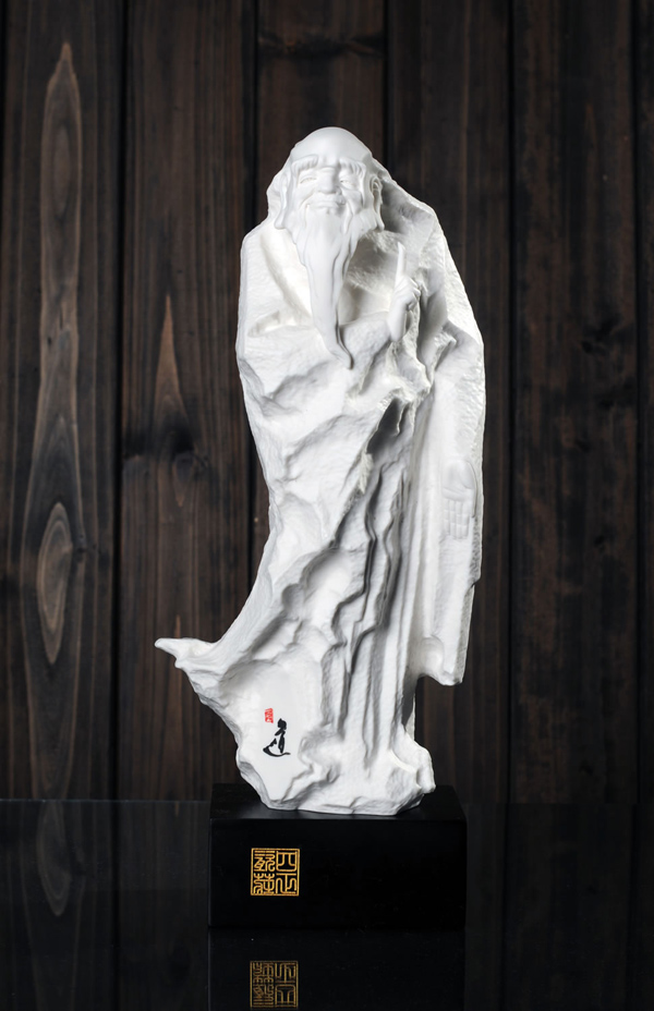鄭志德代表作品,獲美國巴拿馬一百周年慶典優(yōu)秀藝術(shù)家作品獎,作品工藝精甚,大師手筆,化繁為簡,簡約而不簡單,臉上皺紋清晰自然,老子形象逼真?zhèn)魃。作品富有?chuàng)意,以巖石為身,引申出并強調(diào)了老子的言論:道法自然。