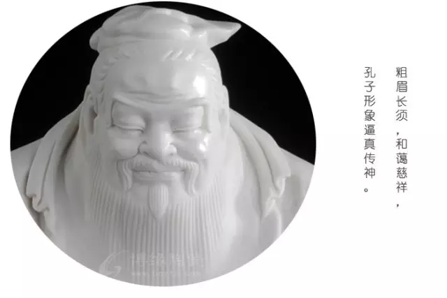 《孔子》作品以德化溫潤如玉的“中國白”為胎質(zhì),手工制作,胎骨潔白,堅實致密,有凝脂似玉之感。孔子的眉毛、鼻子、胡須、每一個處細(xì)節(jié)都是大師用心純手工雕刻,孔子雕刻得活靈活現(xiàn)。