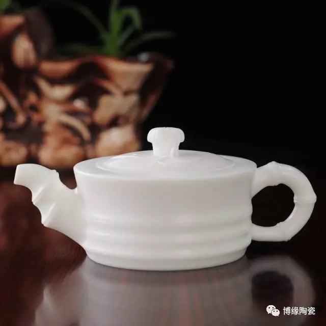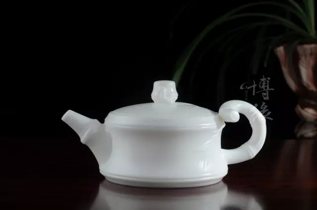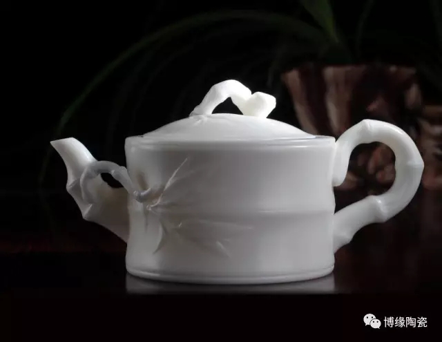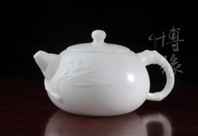 竹子亭亭玉立,不畏霜雪,四季常青,且“未出土?xí)r先有節(jié),及凌云處尚虛心”,是中國(guó)傳統(tǒng)美德的物質(zhì)載體,大有君子之風(fēng)。德化白瓷古樸清雅,該瓷壺作品壺柄宛如竹節(jié),氣質(zhì)高雅。圓平蓋面與壺口取平,吻合緊密,個(gè)性獨(dú)立,層次分明。