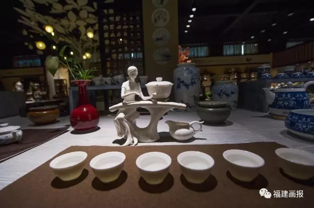 順美陶瓷文化生活館內(nèi)擺放的創(chuàng)意茶具