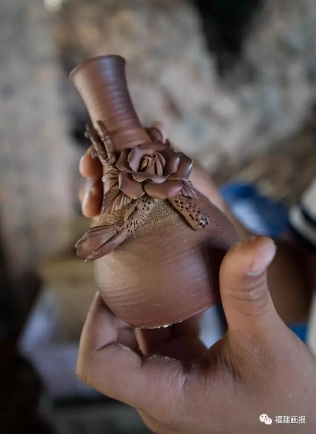 洞上陶藝村曉德陶藝坊的主人是“80后”陶藝師李德鵬,17歲初中畢業(yè)后,他進(jìn)入朋友的陶瓷廠當(dāng)?shù)袼軐W(xué)徒。之后為了謀生,他轉(zhuǎn)行做起了鏟車司機(jī),中斷了與陶瓷的緣分。直到三年前,看著三班鎮(zhèn)陶瓷行業(yè)發(fā)展迅速,他毅然決定回到家鄉(xiāng)與妻子開辦了這間陶藝坊,重拾自己最擅長的手拉坯雕刻。經(jīng)營陶藝坊一年多以來,李德鵬不僅提高了收入,也激發(fā)了創(chuàng)作靈感。