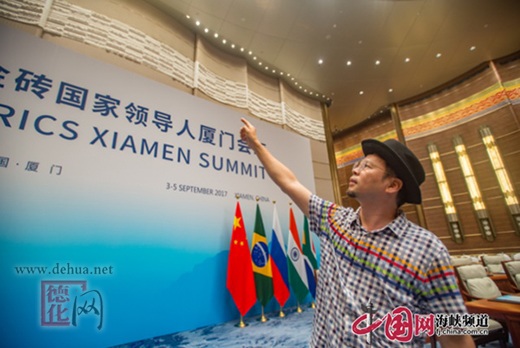 “原來(lái)景德鎮(zhèn)是官窯,我們德化是民窯,景德鎮(zhèn)陶瓷的名氣比較大。通過(guò)這次金磚會(huì)議,德化陶瓷進(jìn)入國(guó)禮瓷和國(guó)宴瓷,名氣大大提升,民窯變成了官窯。德化陶瓷出口從明代開(kāi)始就比較多,在西歐國(guó)家和美國(guó)等國(guó)德化陶瓷的知名度非常高,2015年德化被聯(lián)合國(guó)教科文衛(wèi)組織評(píng)為‘世界陶瓷之都’,這是全球唯一一個(gè)。”劉德旺表示,為力推德化陶瓷“中國(guó)白”,此前,德化縣人民政府于今年8月20日至9月1日在中國(guó)國(guó)家博物館舉辦了“絲路使者 ‘中國(guó)白’再出發(fā) 2017國(guó)博德化白瓷展”,106位作者181件作品集體亮相,4位國(guó)家領(lǐng)導(dǎo)人前來(lái)參觀,此次展覽在國(guó)內(nèi)外陶瓷界引進(jìn)巨大反響,“德化將趁金磚會(huì)議的東風(fēng),下一步準(zhǔn)備這個(gè)月底在法國(guó)里昴舉辦第二屆中法文化論壇‘中國(guó)白’國(guó)際陶瓷藝術(shù)大獎(jiǎng)賽。接下去我們還會(huì)逐步做一系列活動(dòng),帶領(lǐng)德化陶瓷企業(yè)去開(kāi)拓國(guó)內(nèi)外市場(chǎng)。”