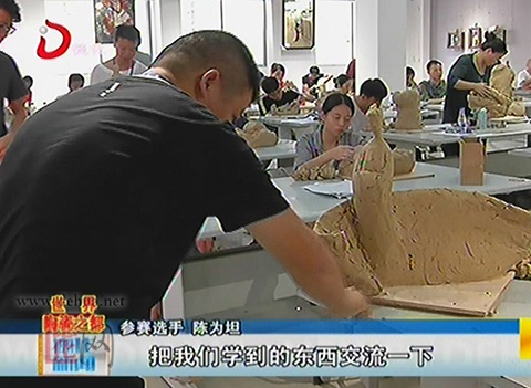 【同期聲 參賽選手陳為坦:因?yàn)閬?lái)這邊參加比賽可以互相學(xué)習(xí)、交流,能取長(zhǎng)補(bǔ)短,把我們學(xué)到的東西交流一下,后面能更好地把我們陶瓷文化更好地發(fā)揚(yáng)一下,我這個(gè)是以“一帶一路”為題材的,以我們?nèi)菸幕,因(yàn)槲覀內(nèi)菸幕催h(yuǎn)流長(zhǎng),因?yàn)槲艺麄(gè)設(shè)計(jì)是以一本書的形式來(lái)做,然后,我后面會(huì)以包括后面的一些處理,都是以一些我們?nèi)葸@邊的文化,因?yàn),泉州是海上絲綢之路的起點(diǎn),所以說(shuō)選用這個(gè)題材。】