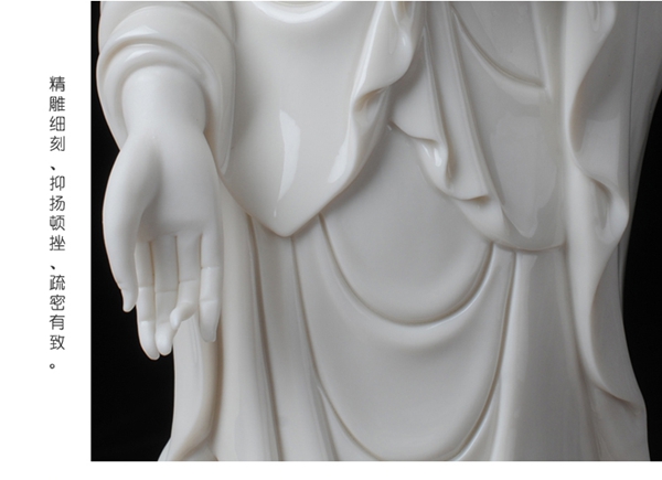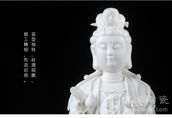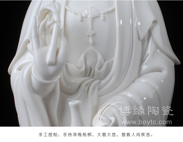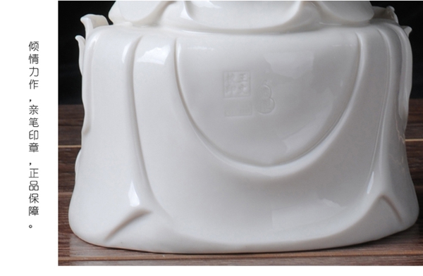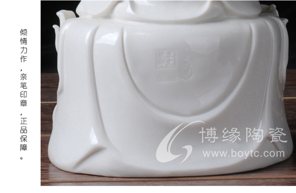 作品意境超然,純手工捏制雕塑,靈動脫俗,佛像的項鏈珠串,凹凸有致,長袍衣紋無風(fēng)自動,線條流暢靈動,盡顯優(yōu)雅,手部,指尖,纖細修長,透亮光澤,每個細節(jié)都是大師純手工精心捏塑,技藝精湛。作品背部附有作者親筆印章,具有很高的藝術(shù)性,鑒賞性和收藏價值。