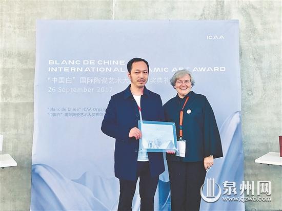 9月26日,第二屆中法文化論壇在法國(guó)里昂召開(kāi)。作為論壇系列活動(dòng)的重要組成部分,“中國(guó)白”國(guó)際陶瓷藝術(shù)大獎(jiǎng)賽頒獎(jiǎng)儀式于當(dāng)天在里昂匯流博物館舉行。德化陶瓷藝術(shù)家黃永星作品《何朝宗》獲得優(yōu)秀獎(jiǎng),林建全等17位德化陶瓷藝術(shù)家分別獲匯流獎(jiǎng)、傳承獎(jiǎng)、支持獎(jiǎng)等,部分獲獎(jiǎng)的國(guó)外陶瓷藝術(shù)家作品是在德化創(chuàng)作的。