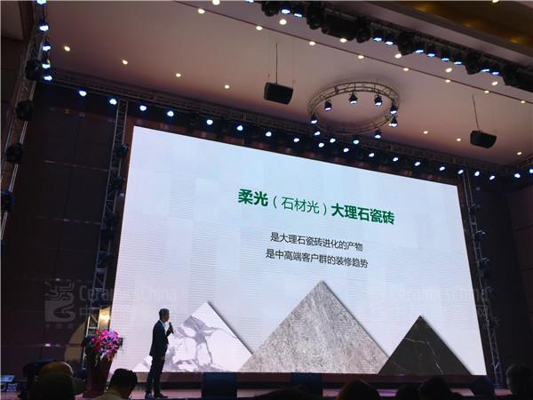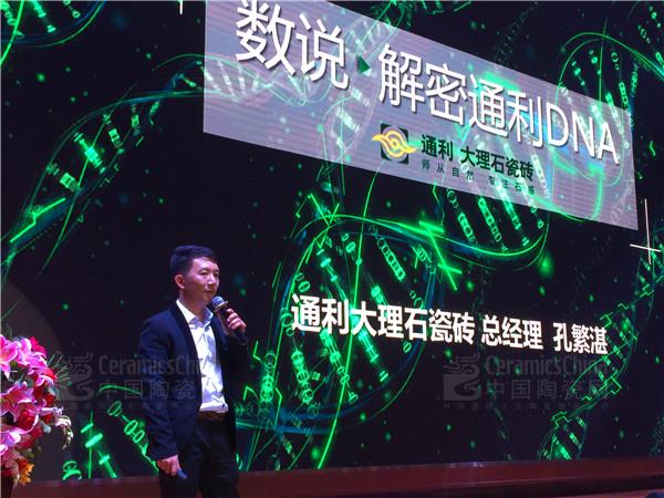通利大理石瓷磚總經(jīng)理孔繁湛,從大理石瓷磚的發(fā)展、通利大理石瓷磚的DNA來源以及市場用戶需求,用數(shù)據(jù)論證通利大理石瓷磚的發(fā)展,用數(shù)據(jù)論證了 “石材+大理石瓷磚”疊加中的“柔光大理石瓷磚”將成為市場主流。