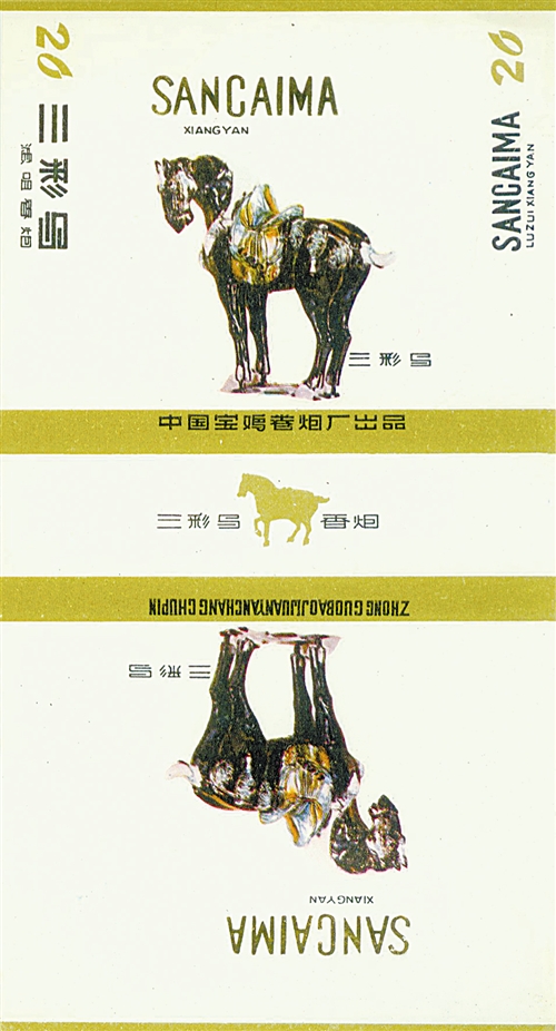 ④上世紀70年代中國寶雞卷煙廠出品的“三彩馬”煙標。