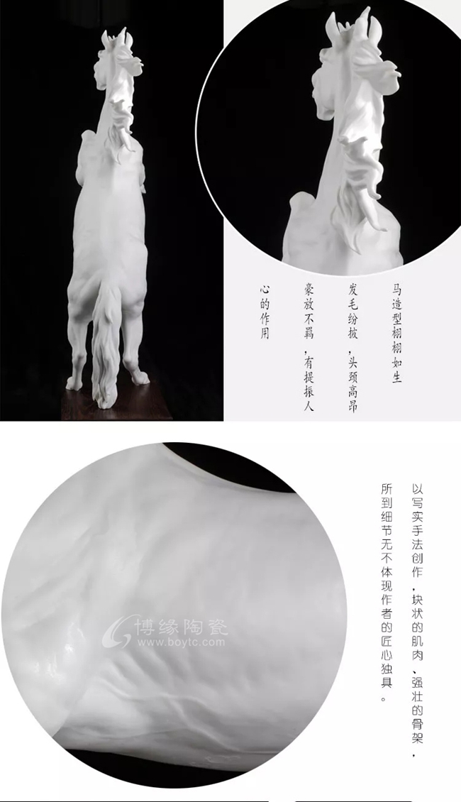 都說家無瓷不貴,室無瓷不雅,當(dāng)你在躊躇該選擇哪款的陶瓷工藝品裝飾擺件時,這件《立馬成功》作品是最佳選擇,不管是家居、辦公室、會所等場所這件作品都是可以HOLD的住,作品不但可以起到裝飾裝飾的作用,具有招財進(jìn)寶、鎮(zhèn)宅、馬到成功的等的美好寓意,提升收藏者的品味、格調(diào)。