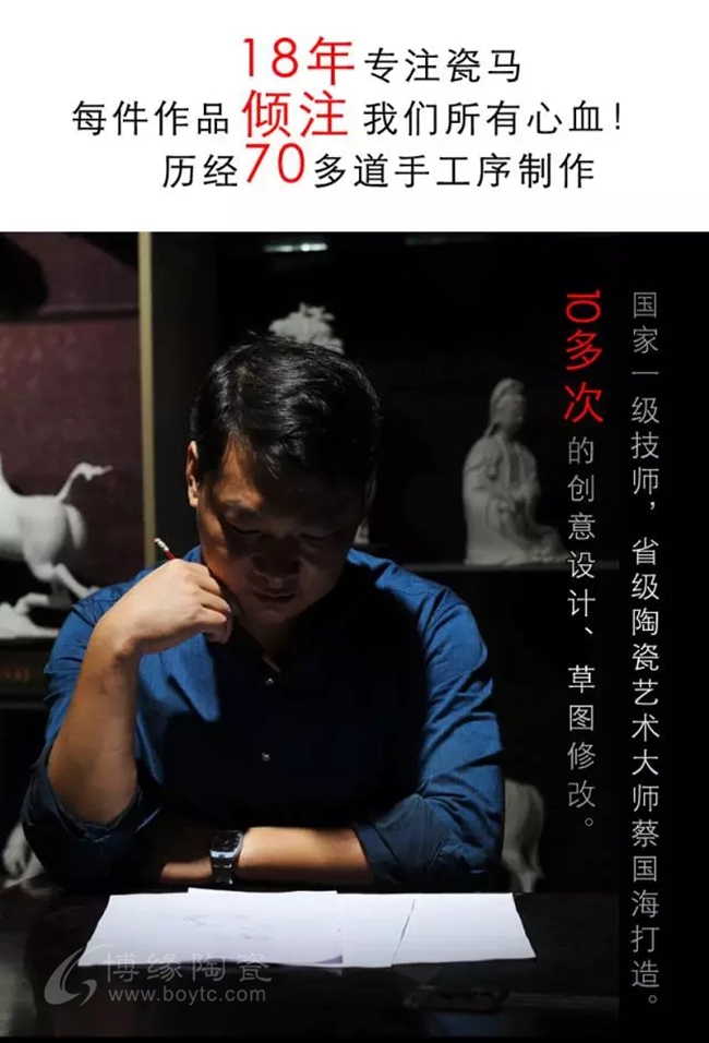 省大師18年專注瓷馬,手工白瓷瓷雕匠心打造,其造型非凡獨(dú)特,需經(jīng)1330多度高溫?zé),近乎苛刻的制造工藝與較低的成品率,彰顯中國白瓷瓷馬的珍貴性。
