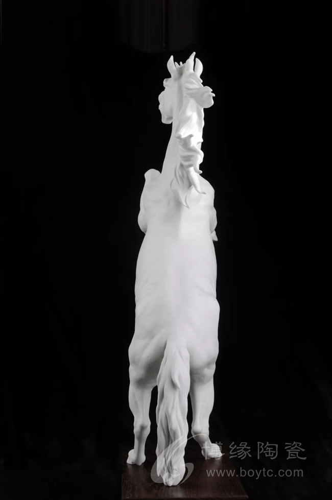 作品是省大師匠心手作【大重器】作品,作品采用德化上等白瓷瓷泥,瓷質(zhì)潔白細(xì)膩,采用寫實(shí)的手法追尋自然美,體現(xiàn)駿馬的野性與靈性,具有極強(qiáng)的感召力。