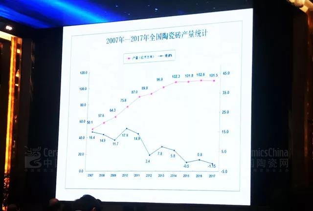 1、全國建筑陶瓷產量共101.46億平方米,比2016年下降1.15%。