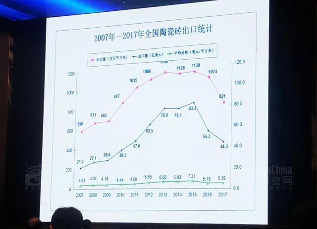 3、出口陶瓷磚8.21億平方米,同比下降23.6%;出口額44.26億美元,減少20%。