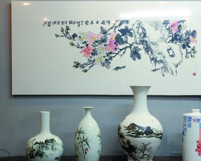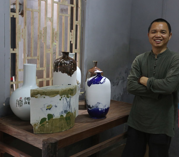 “以前用的都是景德鎮(zhèn)的陶瓷制作技術,每次去參賽都會被誤解是景德鎮(zhèn)陶瓷,我想做一種屬于廣西的美術陶瓷。”但怎樣才能突出廣西本地特色呢?楊綱雄一直在思考,也一直在嘗試。他去采購賓陽的瓷泥,在瓷器上作畫,把現(xiàn)代色彩和傳統(tǒng)的山水畫相結合,創(chuàng)作出來的作品在西安參賽獲獎。